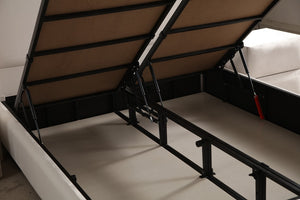 Grâce à son système de lit coffre relevable, vous accédez à un grand volume de rangement, idéal pour optimiser l’espace. Le mécanisme est soutenu par 4 vérins hydrauliques puissants, garantissant une ouverture facilitée, stable et sécurisée. Le caisson en métal assure une robustesse permettant de supporter une charge maximale totale de .