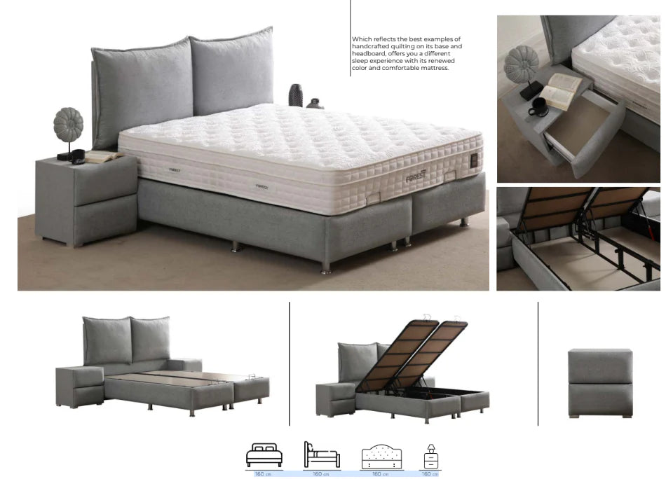Grâce à son système de lit coffre relevable, vous accédez à un grand volume de rangement. Le mécanisme est soutenu par 4 vérins hydrauliques puissants, garantissant une ouverture facilitée, stable et sécurisée. Le caisson en métal assure une robustesse permettant de supporter une charge maximale totale de .